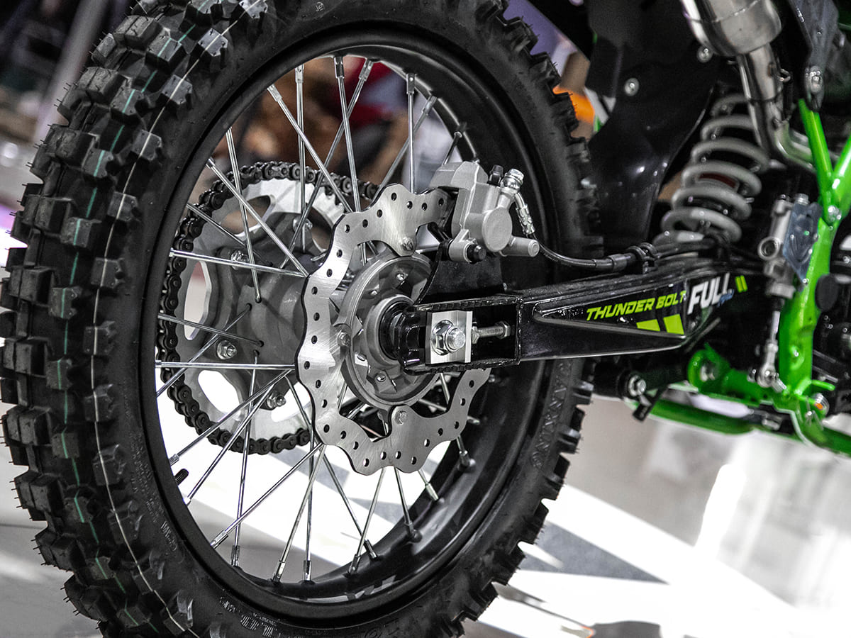 Трансмиссия этого мотоцикла – механическая, что позволяет вам полностью контролировать процесс передачи мощности на колеса. Диаметр колес 21 дюйм спереди и 18 дюймов сзади имеет отличное сцепление с поверхностью и стабильность при любых условиях.