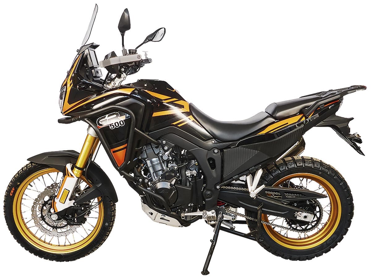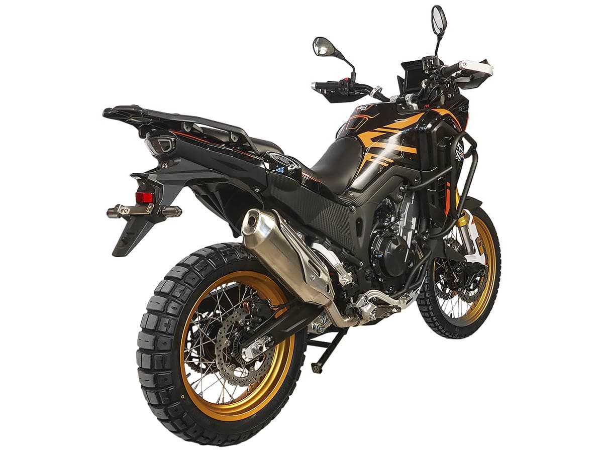 В базе присутствуют дуги, защита картера, защита рук, а также есть возможность установить вместительные багажные кофры, которые позволят перевозить с собой всё необходимое. Этот мотоцикл — настоящая революция в сегменте туристических эндуро в плане вездеходности, технической оснащённости и качества.