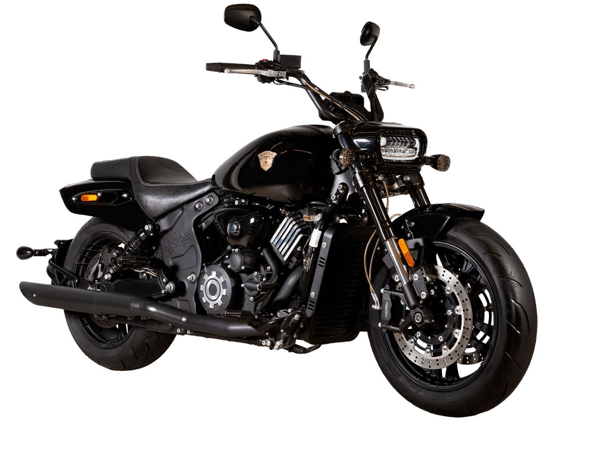 GROZA YL800 – круизёр, весь облик которого намекает на свободу, независимость и дорогу, уходящую в горизонт. Узкая фара с мощным светодиодным блоком – один из современных трендов в мире круизёров – придаёт мотоциклу больше серьёзности и брутальности. Отсутствие лобового обтекателя и ветрового стекла дают пилоту сполна насладиться набегающим потоком и полнее ощущать скорость – 800-кубовый V-твин способен разгонять мотоцикл до 180 км/ч. Силуэт этого круизёра как раз рождён этим двигателем в середине композиции, изящной каплей бака и двумя глушителями чёрного цвета, симметрично разведёнными в стороны.