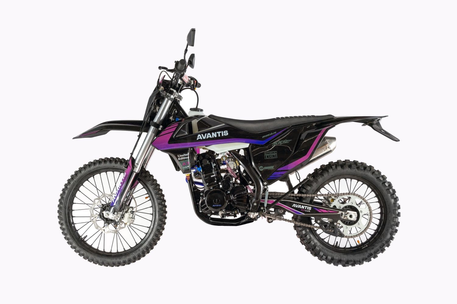 МОТОЦИКЛ AVANTIS A7 (172 FMM) С ПТС — 250-кубовый байк для взрослых водителей и подростков от 16 лет. Универсальная модель, рассчитанная на перемещение по бездорожью и в городском трафике. Благодаря наличию ПТС байк можно поставить на учёт в ГИБДД и кататься без ограничений. Однако у райдера должно быть водительское удостоверение категории «А».