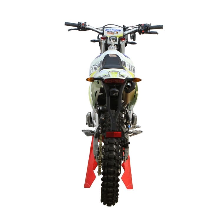 Гидравлические дисковые тормоза моментально реагируют на нажатие, останавливая мотоцикл на месте. Это делает движение на нем не только комфортным и динамичным, но и безопасным. Также, для спокойного передвижения по городу и за его пределы, мотоцикл комплектуется задним стоп-сигналом, поворотниками, клаксоном и зеркалами заднего вида. Объем бака мотоцикла составляет 8,2 литра. Подача бензина осуществляется через карбюратор, охлаждение воздушное. Эксплуатация и ремонт двигателя обходятся дешевле эксплуатации двигателя с жидкостным охлаждением. Купить необходимые запчасти и расходные материалы вы сможете в нашем интернет-магазине.