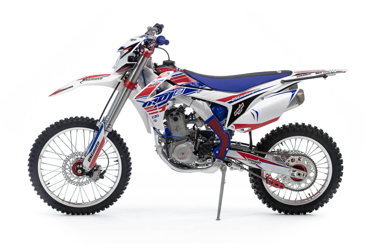 M2 уже в заводской комплектации готов к покорению серьезного бездорожья и участия в соревнованиях. Подвеска MOJO c большими ходами имеет полный диапазон регулировок и помогает отрабатывать даже самые жесткие приземления, с лёгкостью «проглатывает» все неровности. Идеальная развесовка и сбалансированность конструкции мотоцикла даёт преимущество при прохождении острых поворотов и подъёмов.