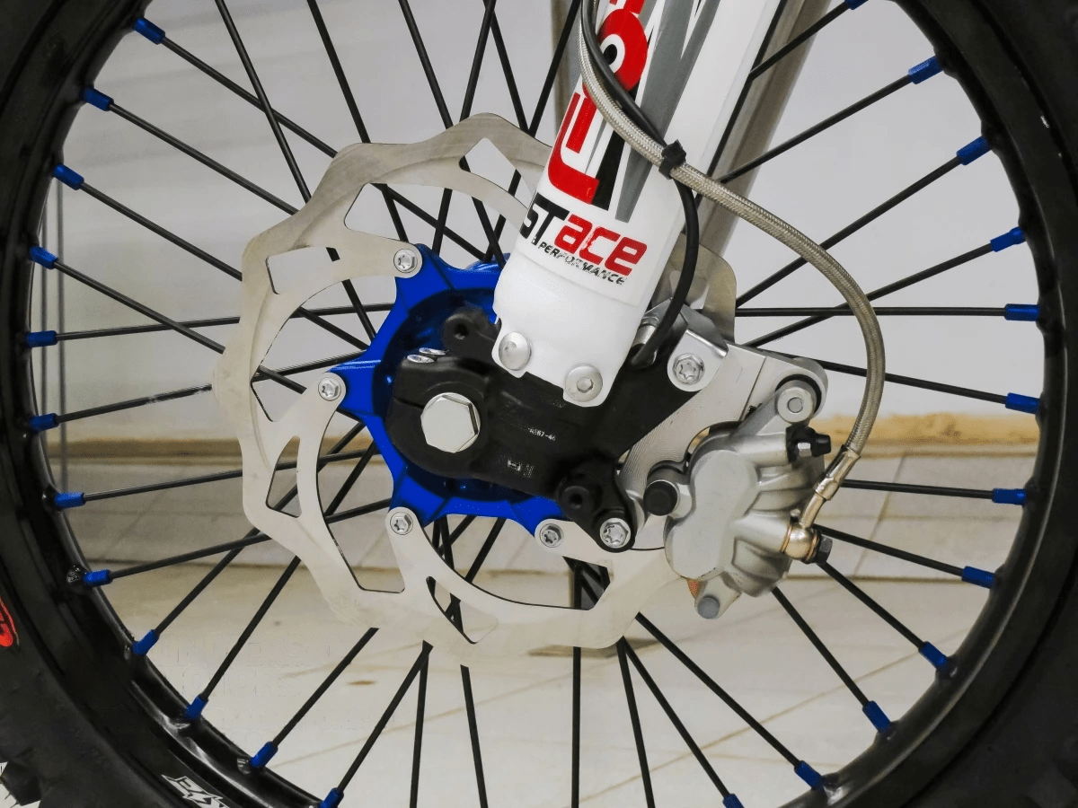 Топовая вилка FAstAce перевернутого типа, с регулировкой сжатия и отбоя. Перья вилки установлены на алюминиевых цельнофрезерованных траверсах, защищенных синим анодированием. FAstAce, с регулировкой отбоя и сжатия, имеет прогрессивную характеристику новейшей конструкции, дающей оптимальные настройки демпфирования для комфорта и управляемости. Высокопрочные алюминиевые диски оснащены легкими анодированными спицами. Покрышки CST с установленными на заводе буксаторами, обеспечивают максимальное сцепление на любых типах грунта.
