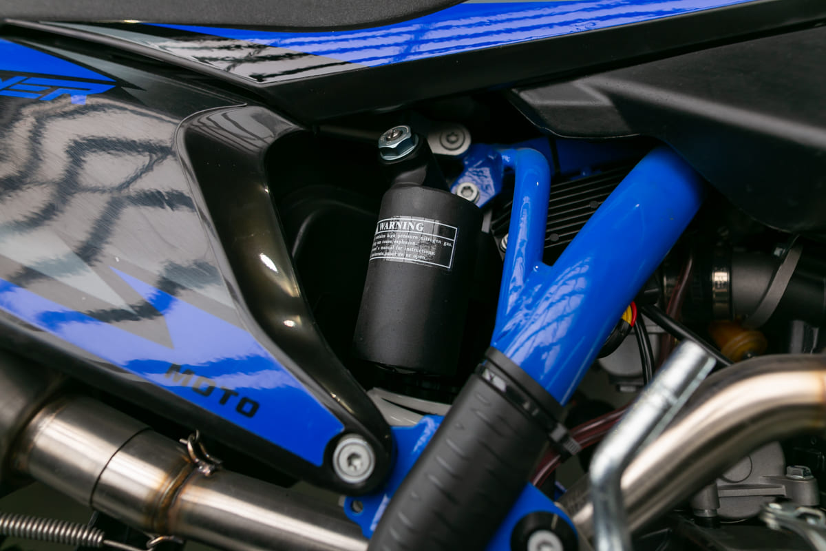 В основе Motoland FX 300 лежит 300-кубовый мотор с маркировкой 174MN-3. Мощность этого агрегата составляет внушительные 26 л.с., что обеспечивает впечатляющую динамику и уверенный разгон даже на наиболее трудных отрезках пути. За счет балансирного вала мотор работает плавно и без вибраций, позволяя гонщику полностью сосредоточиться на управлении. Мотоцикл можно завести как при помощи электростартера, так и кикстартером, делая его уверенным в самых разнообразных условиях. Для поддержки необходимой температуры в двигателе установлена высокоэффективная система охлаждения водяного типа.