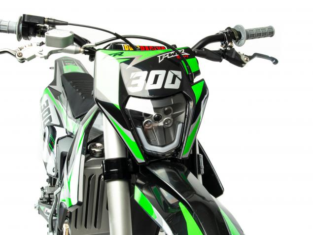 PWR FR300 PRO (174MN) — новинка 2022 г. Современный дизайн мотоцикла подчёркивает спортивный характер байка. Установлен мощный двигатель с водяным охлаждением ZONGSHEN 174MN-3. Большой ход подвесок для комфортного передвижения по пересеченной местности, которые также позволяют ехать быстро и агрессивно.