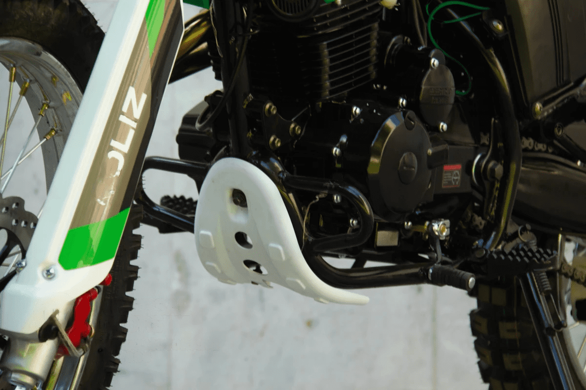Очень надежная подвеска и тормоза, которые обеспечивают отличную управляемость и надежность. Так же мотоцикл имеет предустановленную защиту двигателя.