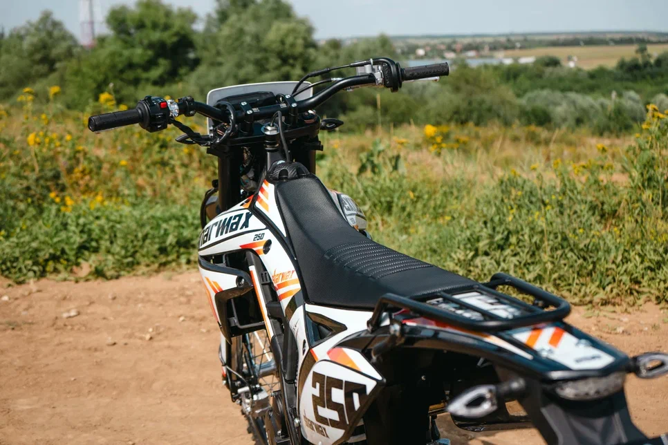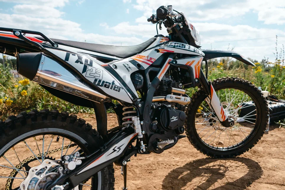 Подвеску Sharmax Expertpro 250-172 можно настроить под грязь, камни и песок без потери качества. Передняя вилка от KYB-Tech Advantage имеет регулировки сжатия и отбоя, задняя — от WP Xplor — справится с любыми преградами: от камней до деревьев. Байк легко настроить под свой вес, подобрав идеальный баланс жёсткости.
