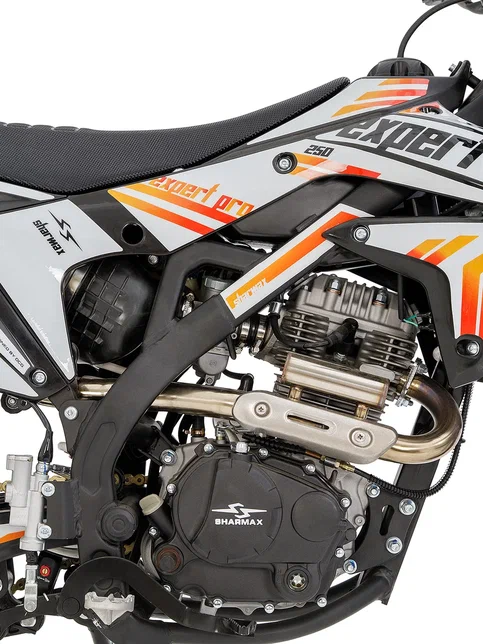 Sharmax Expertpro 250-172 оборудован системой воздушного охлаждения. Нет громоздкого радиатора, вес байка стал меньше, управляемость — лучше. Просто нажмите на газ — и вперёд! За температуру не переживайте — не перегреетесь.