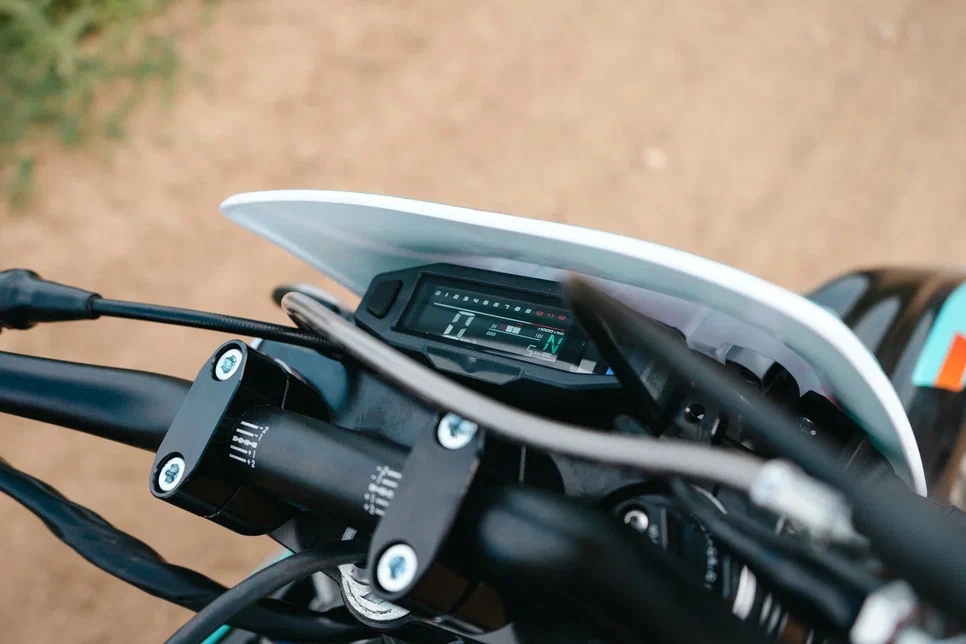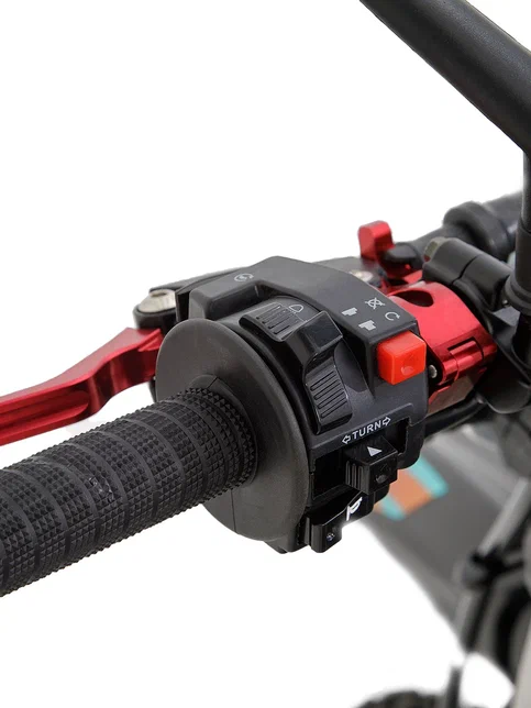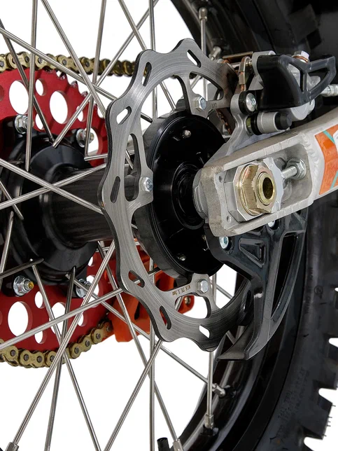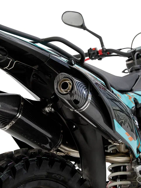 Статус премиального эндуро байка дополняет эргономичный конический руль. Материал — высокопрочный алюминий. Грипсы мягкие и не скользят, защита для рук выдержит сотни падений. Вам останется лишь уверенно схватиться за руль и полететь вперёд со скоростью ветра.