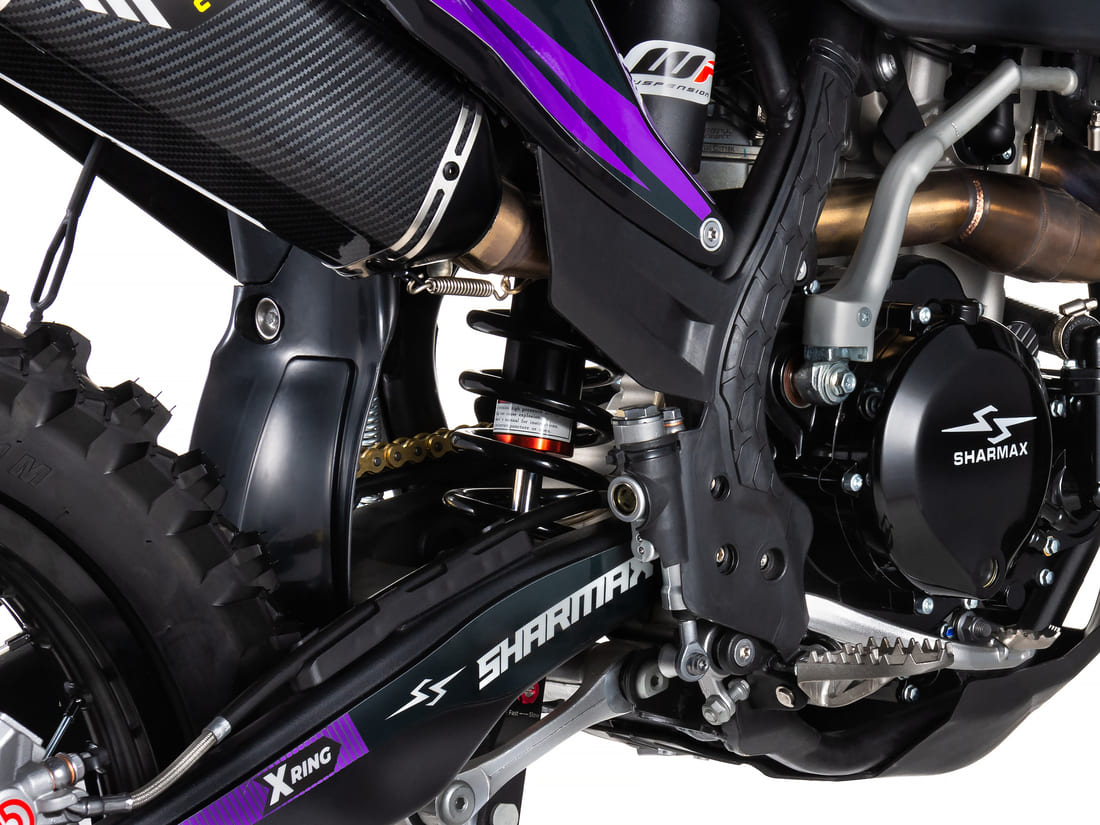 Нереально мощный 4-тактный двигатель ZS194MQ стал самым мощным во всей истории Sharmax Motors. 44 л. с. и 449 кубов обеспечат быстрый разгон с первых метров дистанции. За цепь не переживайте, даже от такого резвого мотора 520 Choco Gold не порвётся. Этот силовой аппарат сделан, чтобы показать соперникам кто главный на треке.