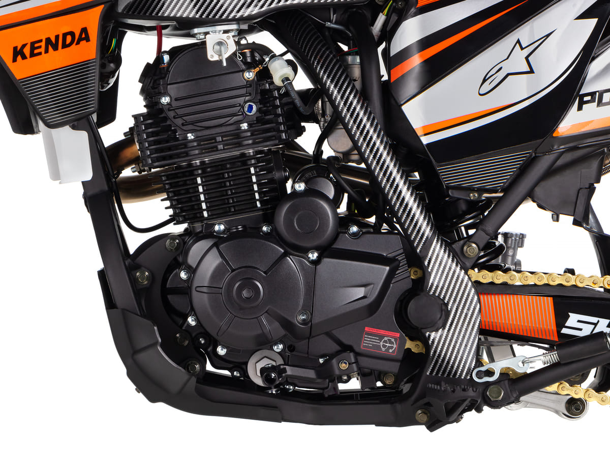 Sharmax PowerMax 280 PR оборудован системой воздушного охлаждения. Нет громоздкого радиатора, вес байка стал меньше, управляемость — лучше. Просто нажмите на газ — и вперёд! За температуру не переживайте — не перегреетесь.