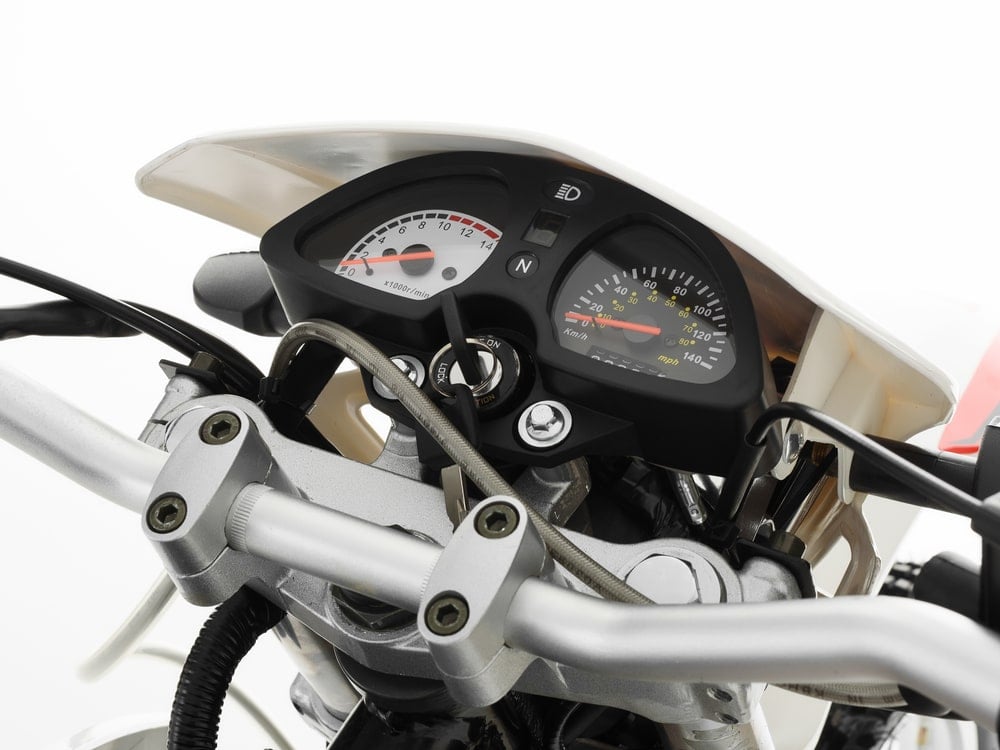 На раме расположился сбалансированный двигатель от легендарного производителя Zongshen — 163FML. Рабочий объём — 200 куб. см и 14 л. с. для быстрого старта и непревзойдённых результатов в эндуро-гонках. Компактный, надёжный и непривередливый в эксплуатации двигатель в паре с 5-ступенчатой коробкой передач обеспечит максимальную уверенность райдеру с любым уровнем подготовки.