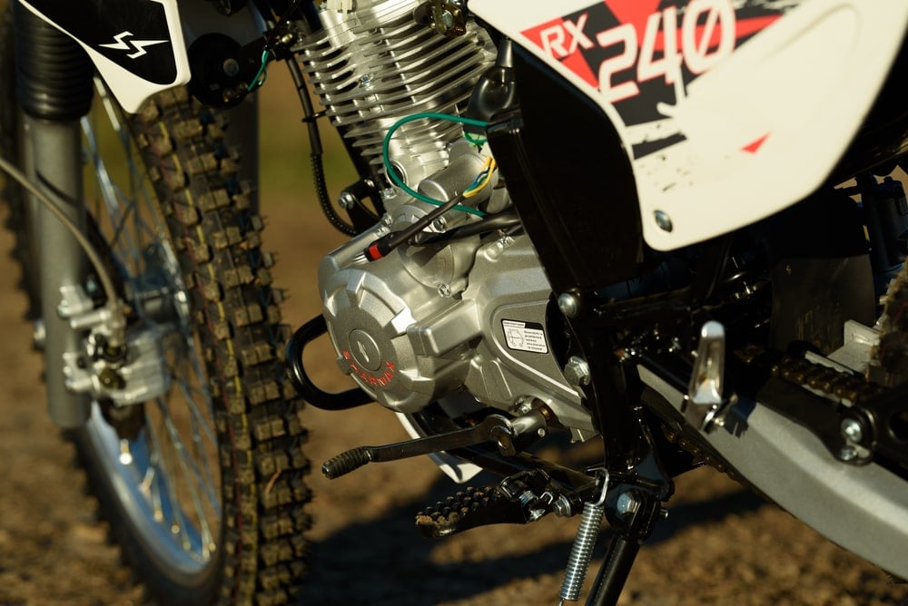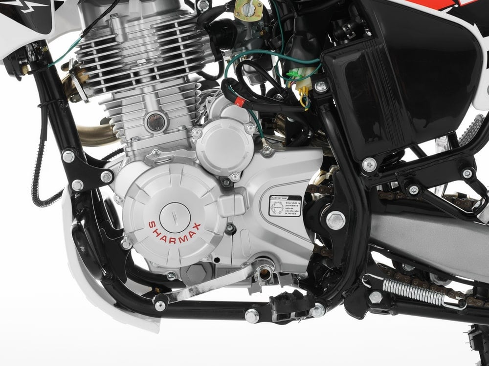 Sharmax Sport 240 оборудован системой воздушного охлаждения. Нет громоздкого радиатора, вес байка стал меньше, управляемость — лучше. Просто нажмите на газ — и вперёд!