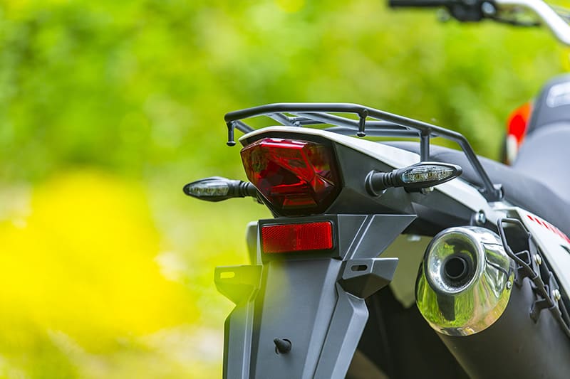 Передняя вилка перевернутого типа диаметром 41 мм с траверсами из алюминиевого сплава, передний ход подвески 224 мм, центральный задний амортизатор, задняя подвеска с ходом 230 мм и высокопрочный рычаг из алюминиевого сплава подходят как для бездорожья, так и для езды в городе.