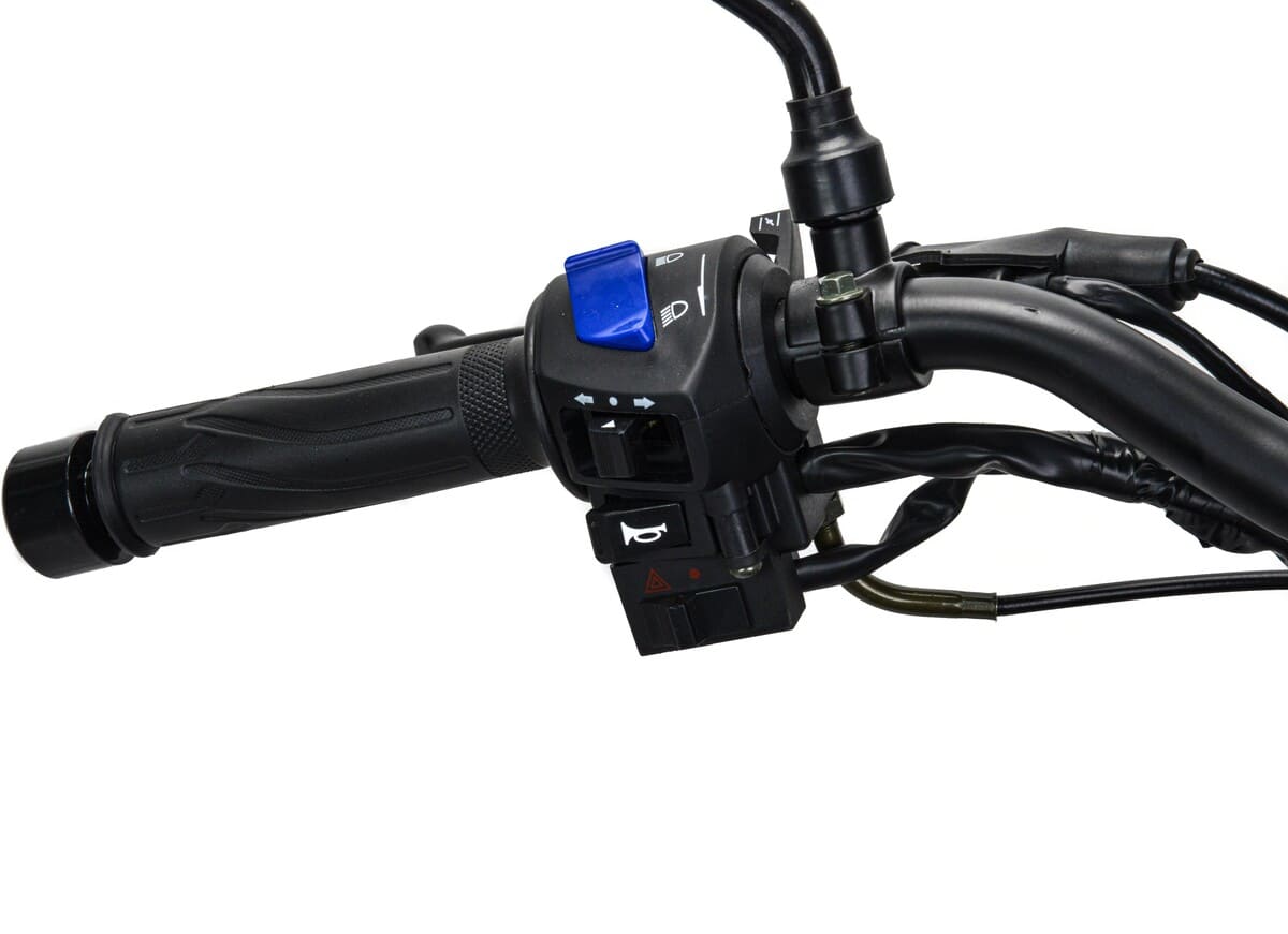 — Фара, электростартер, замок зажигания, АКБ, поворотники, стоп-сигнал, электронная приборная панель.