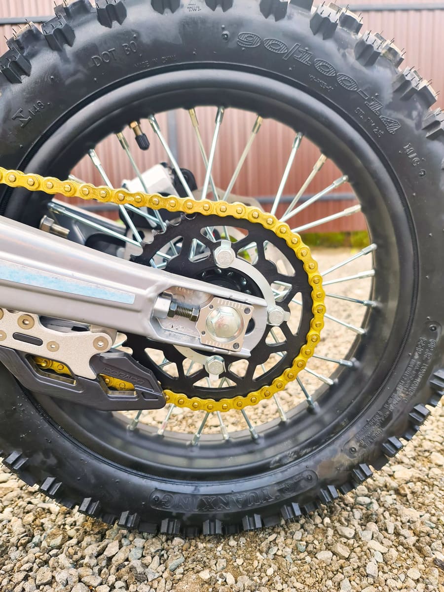 Оснащён обновлёнными пультами управления класса эндуро. Светодиодная фара обеспечивает хорошую видимость в тёмное время суток. Благодаря противоскользящим ручкам, руль не выскользнет из ваших рук даже в самых экстримальных ситуациях. Покрышки с высоким грунтозацепом идеальны для бездорожья. Мощность мотора и небольшой вес питбайка позволяют ему преодолевать значительные препятствия и грязь, хорошо заходить в подъёмы.