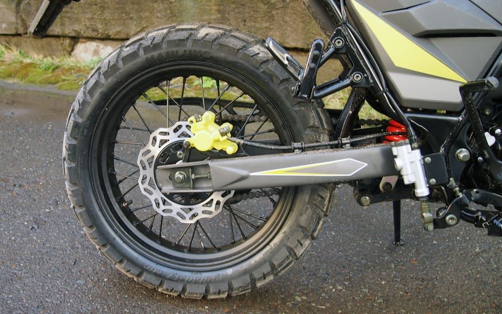 Мотоцикл также оснащен мощной передней перевернутой вилкой и задней подвеской — маятником с моноамортизатором, что обеспечивает отличную устойчивость и комфортность при движении. Для обеспечения безопасности мотоцикла установлены передний и задний дисковые тормоза. Еще одним преимуществом данного мотоцикла является двойная выхлопная система выпуска, которая обеспечивает мощность и эффективность работы двигателя. Колеса мотоцикла имеют размеры переднего 110/90-17 и заднего 130/80-17, а также цепь 520. Мотоцикл также оснащен LED панелью приборов, которая обеспечивает удобство и наглядность при чтении информации о состоянии мотоцикла.