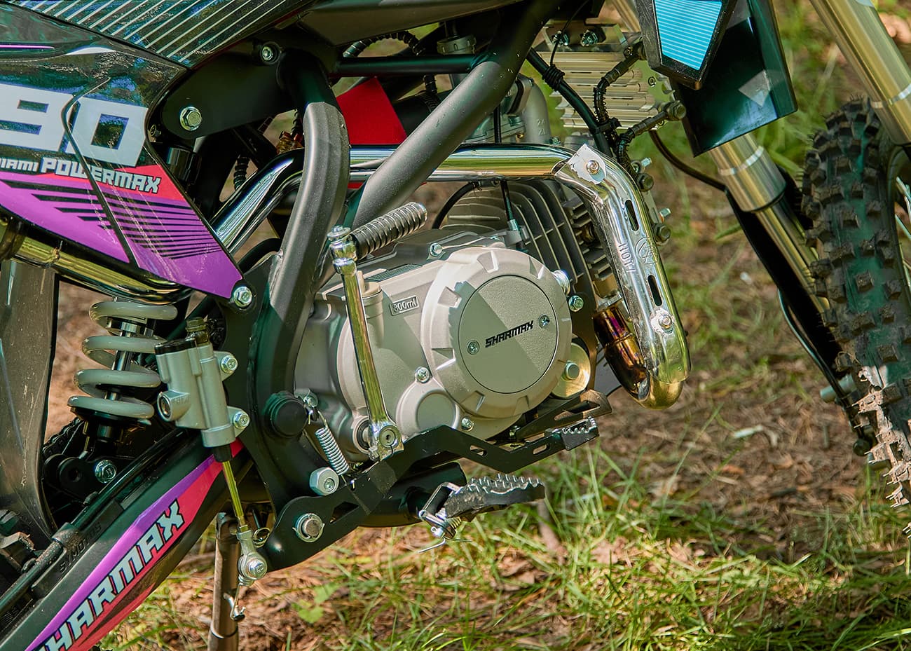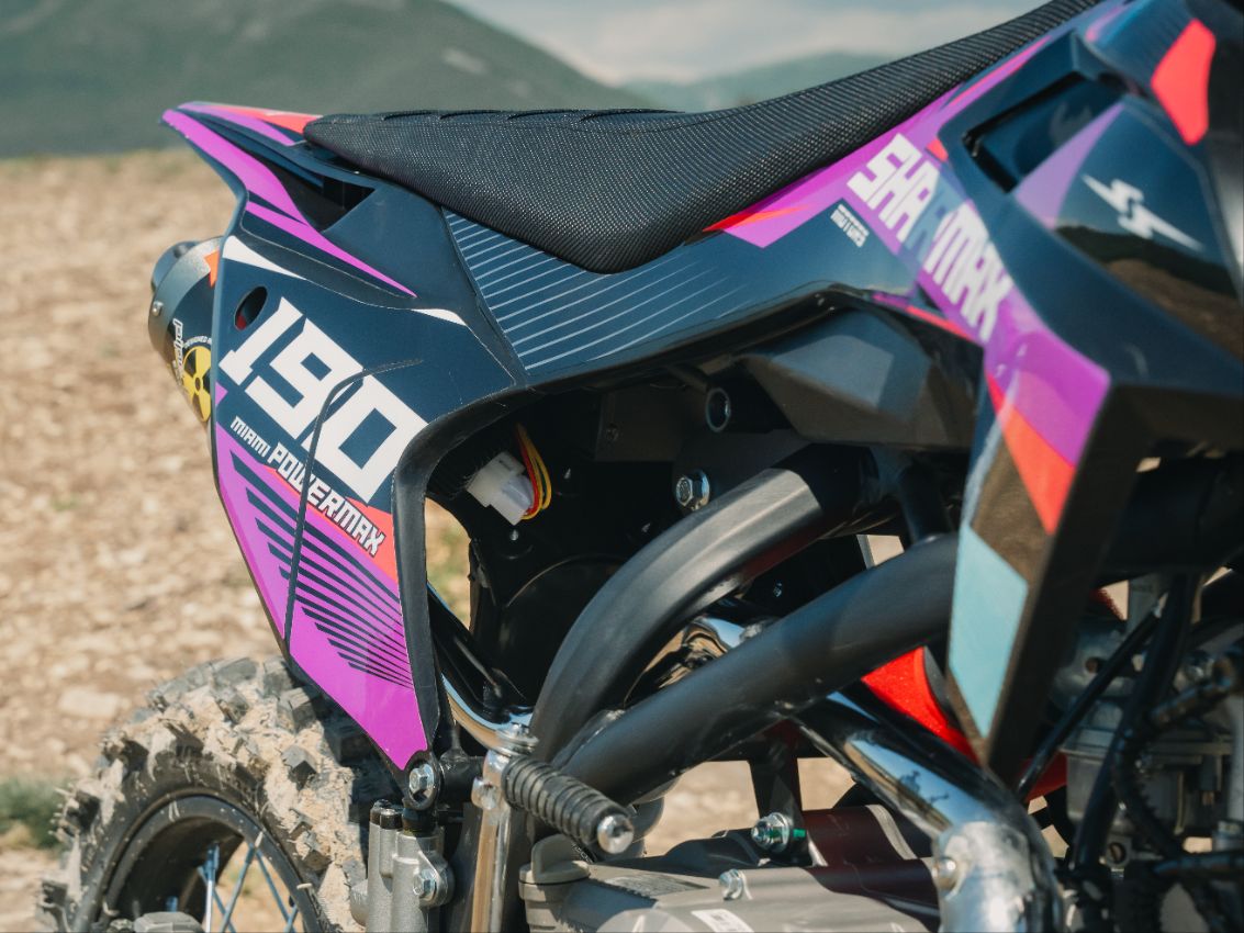 Подвеска SHARMAX MOTORS PowerMax 190 MIAMI готова к большим перегрузкам. Грязь, камни и песок — этот байк справится с любыми препятствиями. Передняя вилка перевёрнутого типа обеспечивает максимальное сопротивление изгибу амортизатора на виражах. Идеально для гонок по бездорожью.