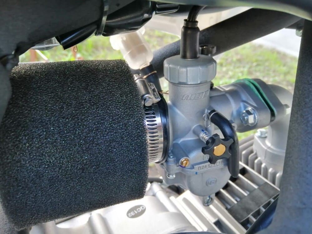 В раме Regulmoto Seven установлен 125-кубовый 4-тактник YX с электростартером– этот двигатель отлично себя зарекомендовал в качестве надежного и простого силового агрегата. Подготовкой топливной смеси занимается карбюратор Nibbi PE24. Запуск мотора возможен как при помощи кнопки электростартера, так и привычной лапкой кика.