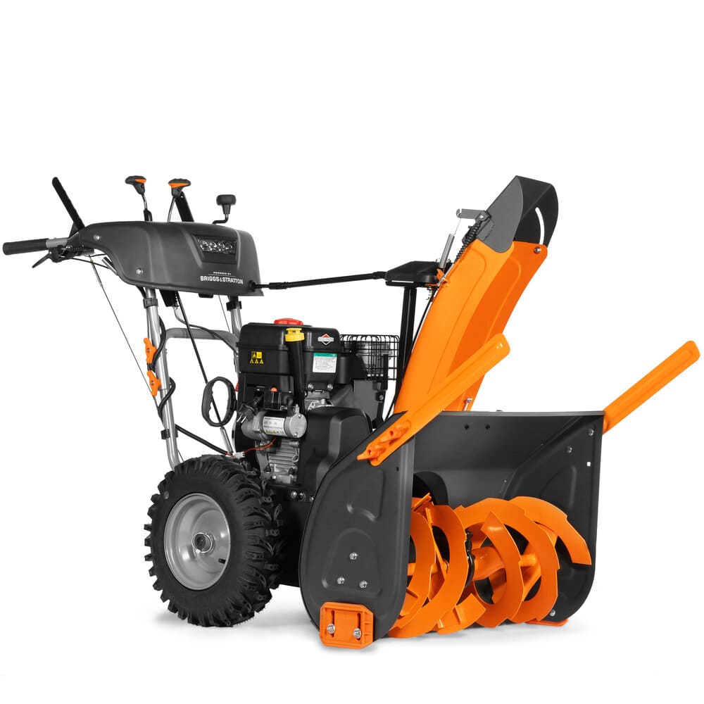 Снегоуборочная машина оснащена бензиновым двигателем Briggs&Stratton мощностью 8 л.с. и объемом 250 куб. см с воздушным охлаждением. Запуск мотора можно производить как с ручного стартера, так и с электростартера, максимальных оборотов двигатель достигает 3600.
