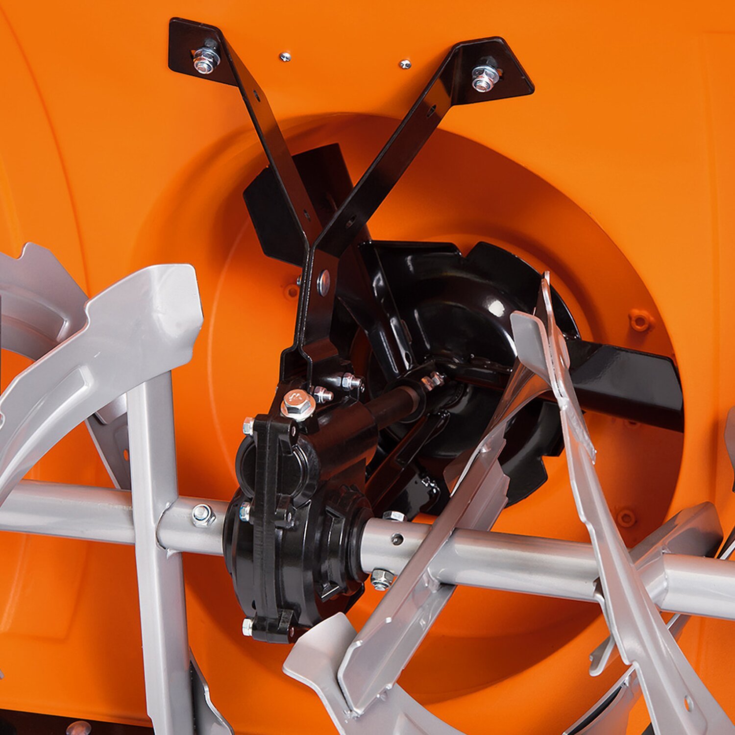 — Металлический желоб для выброса снега. Находится в удобном месте, позволяет перенаправлять выброс снега до 180 градусов с помощью рычага.