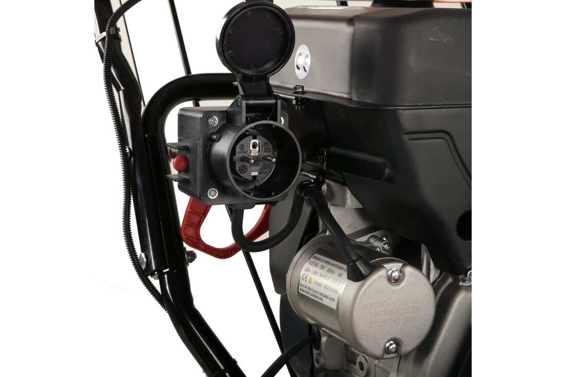 — Ручной стартер. Используется для запуска двигателя и находится в удобном и доступном месте на задней части снегоуборщика в виде рычага.