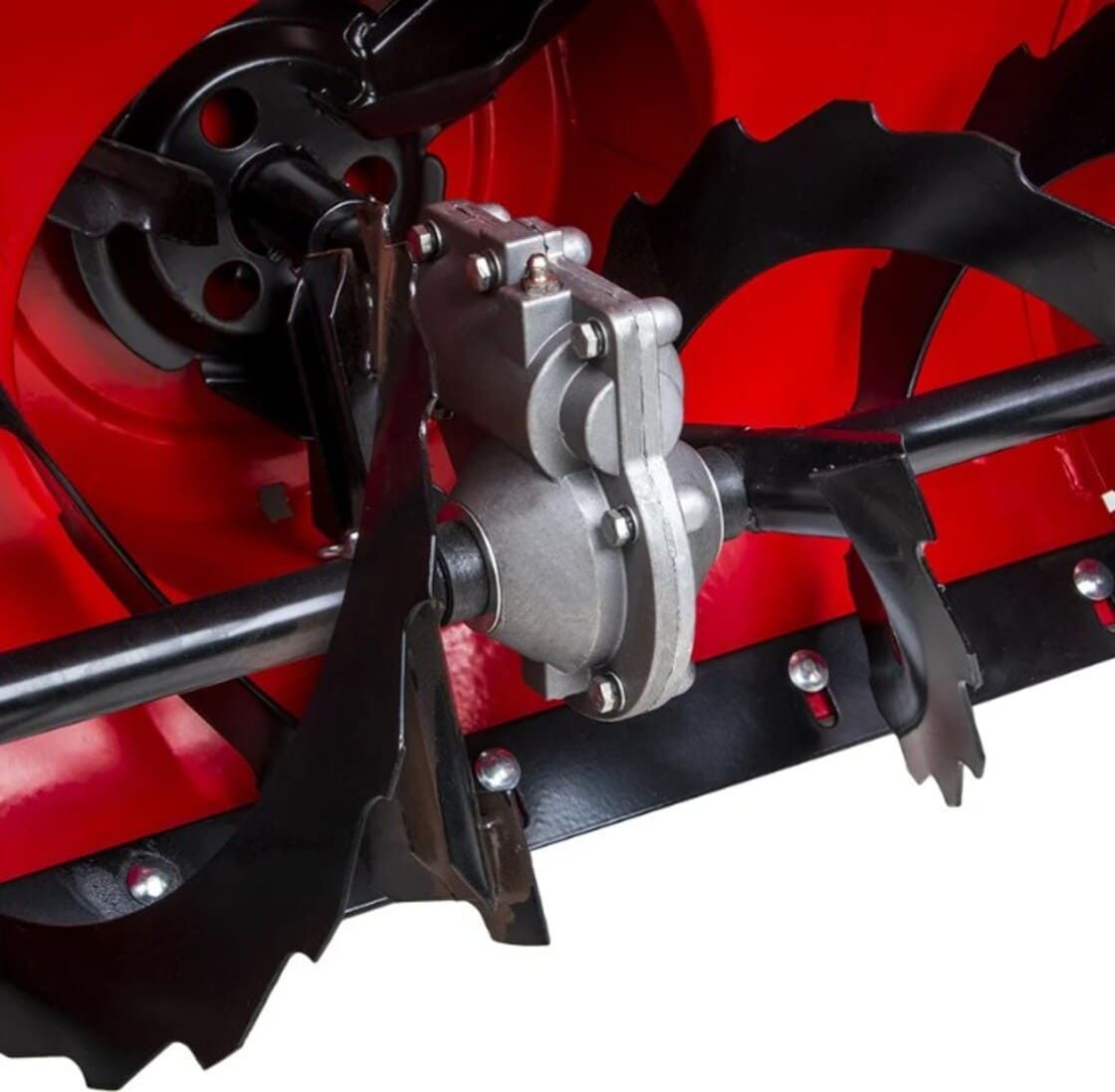 Модель оснащена металлическим шнеком с зубцами, который эффективно перемалывает снег практически любой степени обледенения.
