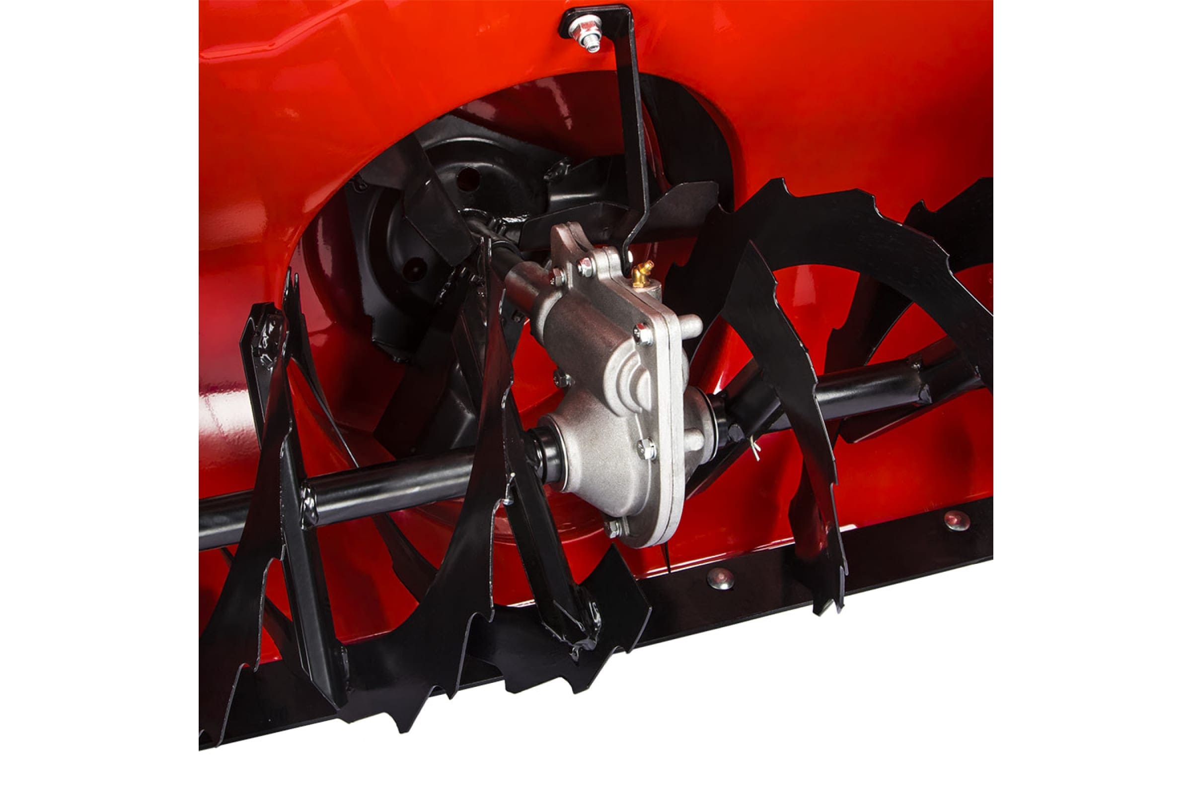 — Стальной шнек. Снегоуборочная машина оснащена специальным шнеком с зубчиками, который позволяет справиться даже с залежавшимся снегом на большой и маленькой территории. Обладает многоступенчатой системой очистки.