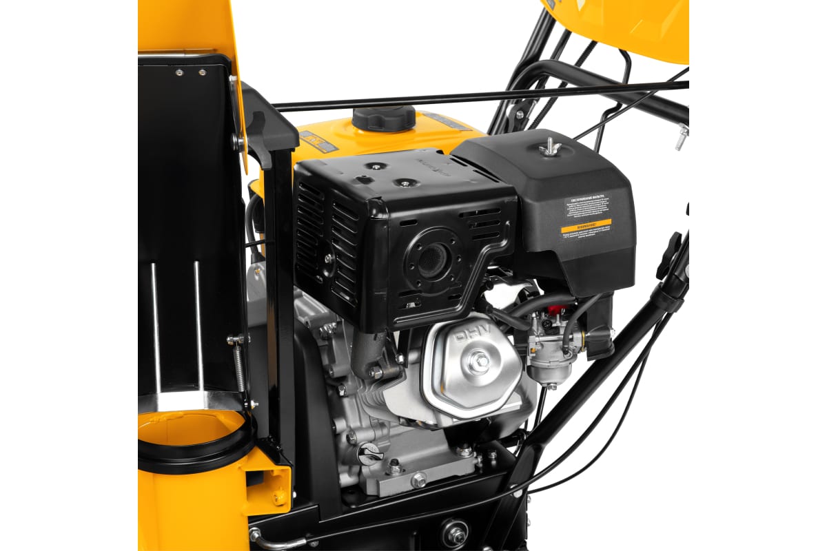 Снегоуборочная машина оборудована бензиновым двигателем Briggs & Stratton мощностью 13 л.с. с системой воздушного охлаждения. Двигатель зимней серии имеет объем 420 куб. см и повышенный крутящий момент. Кожух шнека шириной 760 мм и высотой захвата 540 мм обеспечивает эффективную и быструю уборку больших сугробов, включая слежавшийся снег с ледяной коркой.