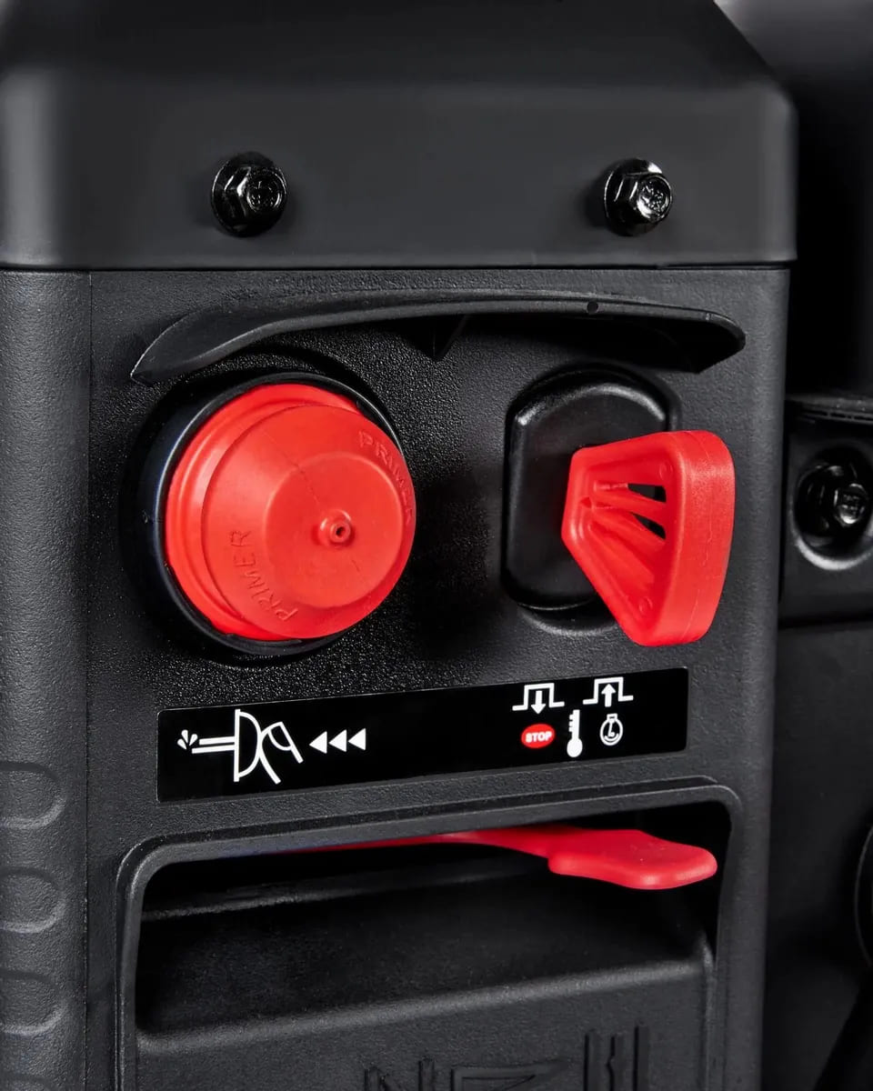 Эргономичные ручки снегоуборщика покрыты специальным морозостойким материалом, что обеспечивает дополнительный комфорт и надежный захват во время работы в морозные дни. Снегоуборщик оснащен широкими колесами с глубоким протектором, обеспечивающими превосходную тягу и маневренность на любом типе снежного покрытия.