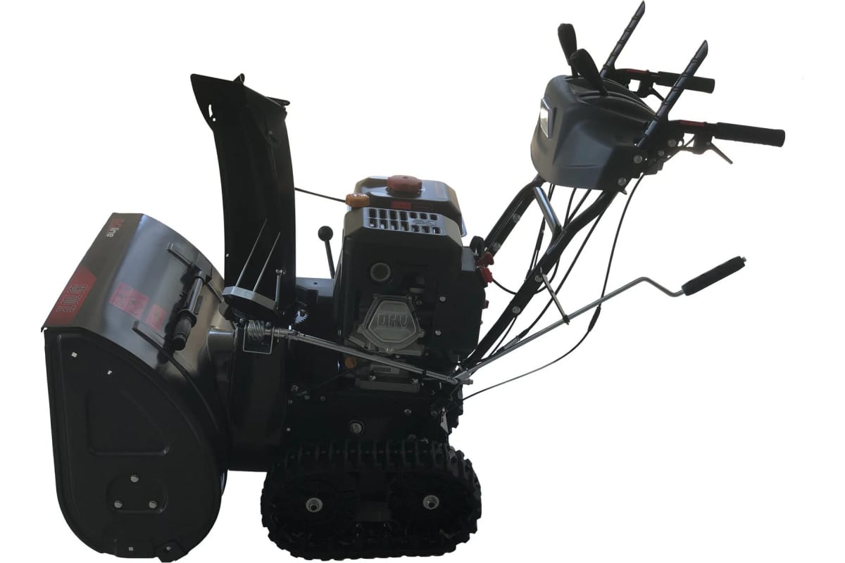 Снегоуборщик имеет 2-ступенчатый тип выброса снега, что обеспечивает дальнюю и точную выброску, повышая производительность. Удобство использования обеспечивается как электрическим, так и ручным стартером. Гусеницы гарантируют легкость и маневренность на разных поверхностях. Трансмиссия с фрикционным диском предлагает 6 скоростей вперед и 2 назад, что позволяет адаптироваться к условиям.
