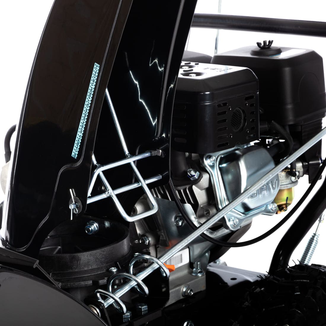 Зубчатая насечка шнека, усиленного ребрами жёсткости, успешно раскалывает лёд. Утолщенная крыльчатка выброса лопаточного типа позволяет отбрасывать снег до 12 метров. Самоходное шасси на колёсной и гусеничной базе снижает нагрузку на оператора и позволяет преодолевать небольшие уклоны.