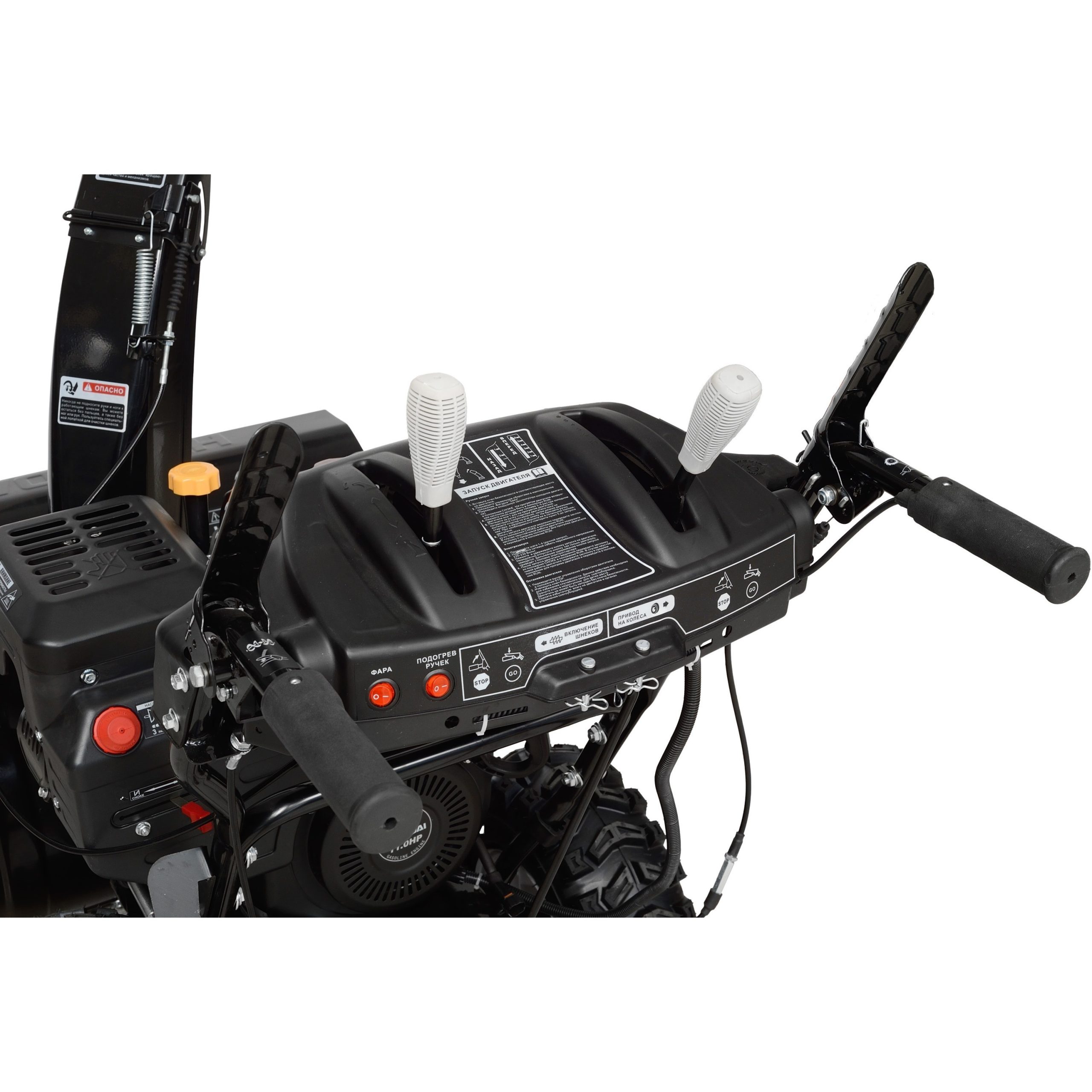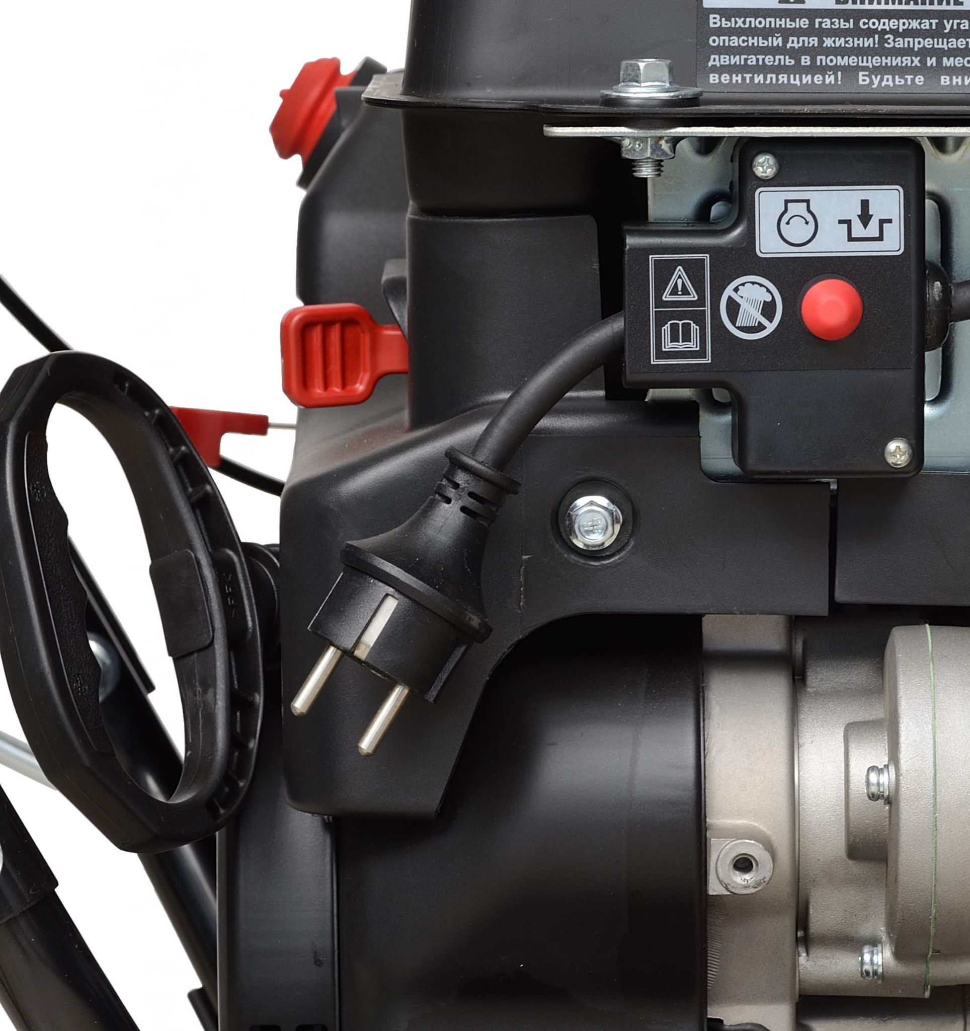 Эта модель снегоуборочной техники демонстрирует эффективность при работе с плотным и свежим снегом. Она также оснащена специальными рычагами на панели управления, которые позволяют регулировать высоту и направление выброса снега. Основные преимущества модели:
