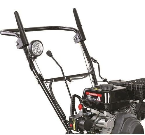 • ● двухступенчатая система выброса: снег подается шнеком и выбрасывается крыльчаткой;