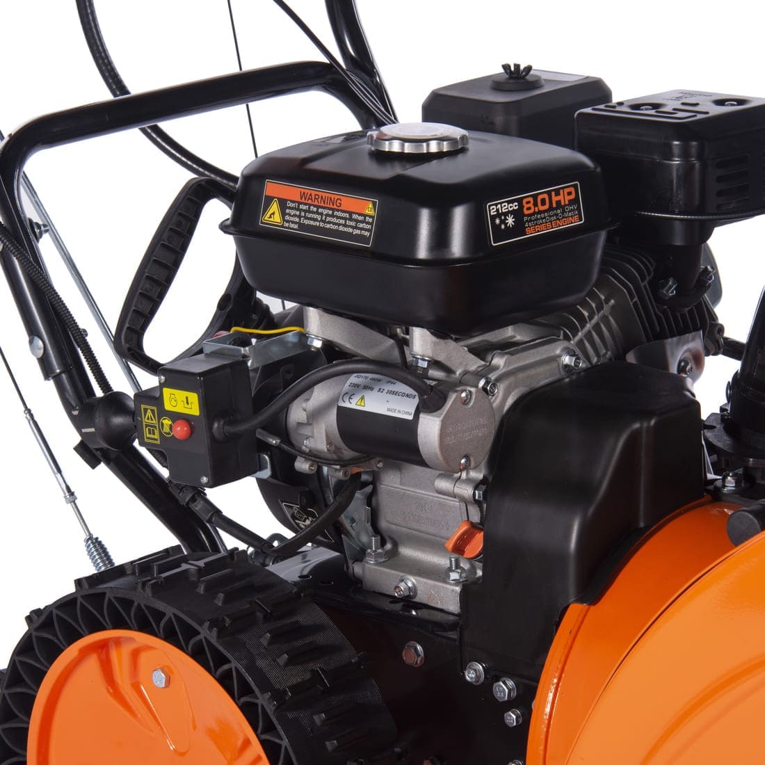 Скорость уборки: 6 передач вперёд и 2 назад, что позволяет выбрать оптимальный режим работы в зависимости от сложности задачи и типа снега. Металлическая рама с добавлением холодостойкого нихрома обеспечивает долговечность конструкции и возможность работать даже при экстремально низких температурах.