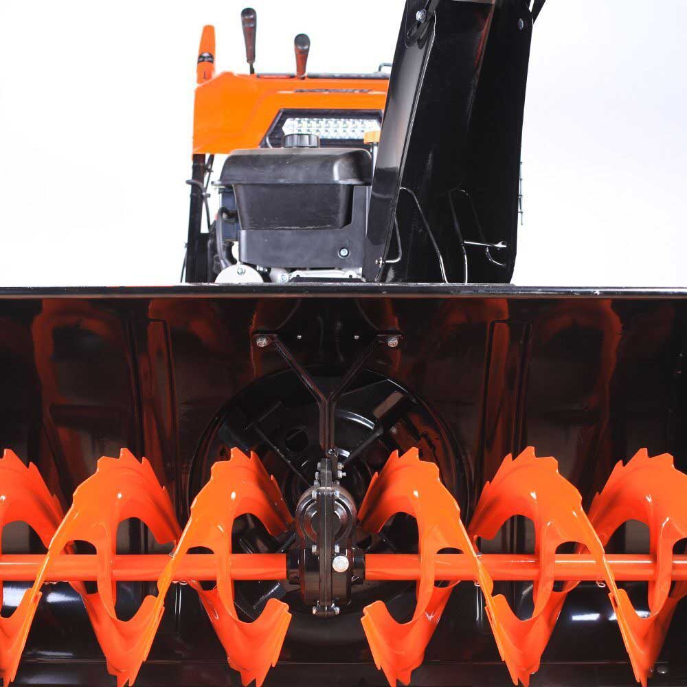 Самый мощный снегоуборщик с рекордной шириной захвата в 107см, позволяет очищать пешеходную дорожку за один проход, а проезд для легкового автомобиля всего за два прохода. Сдвоенные колеса обеспечат отличное сцепление с грунтом при максимальной глубине выпавшего снега. Функция «free hand control» позволяет разворачивать снегоуборщик практически на месте.