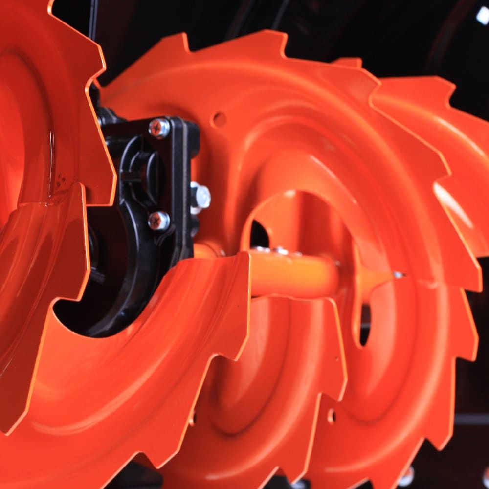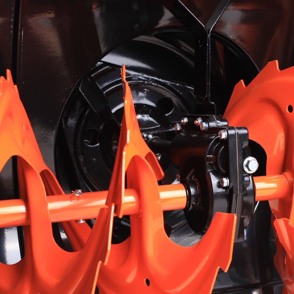 В конструкции снегоуборщика используются только подшипники, а не втулки. Шестерня редуктора шнека выполнена из бронзы, что десятки раз увеличивает ресурс снегоуборщика. На заводе производится регулировка и обкатка каждой единицы техники в собранном состоянии.