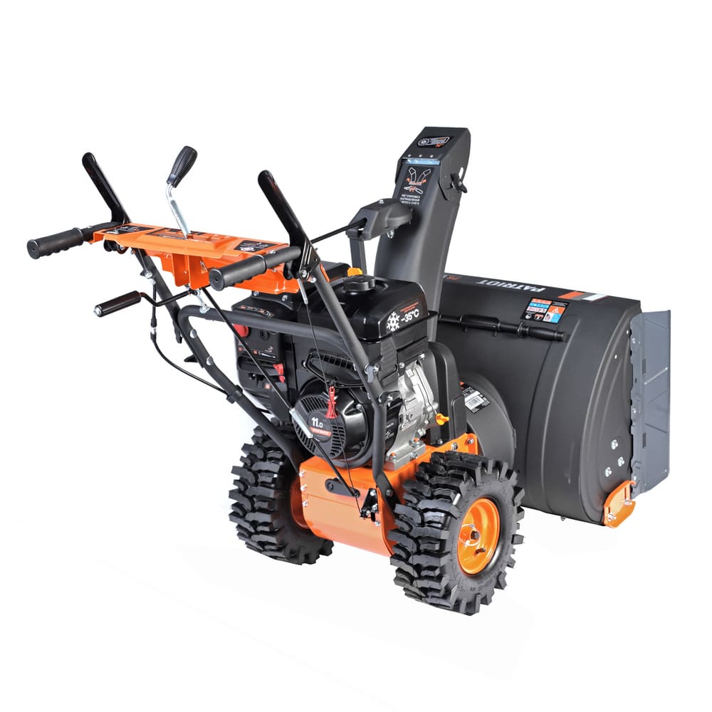 Самоходный снегоуборщик PATRIOT PS 911 предназначен для очистки снега и льда, подходит для небольших площадей, таких как придомовые участки или садовые и подъездные дорожки.