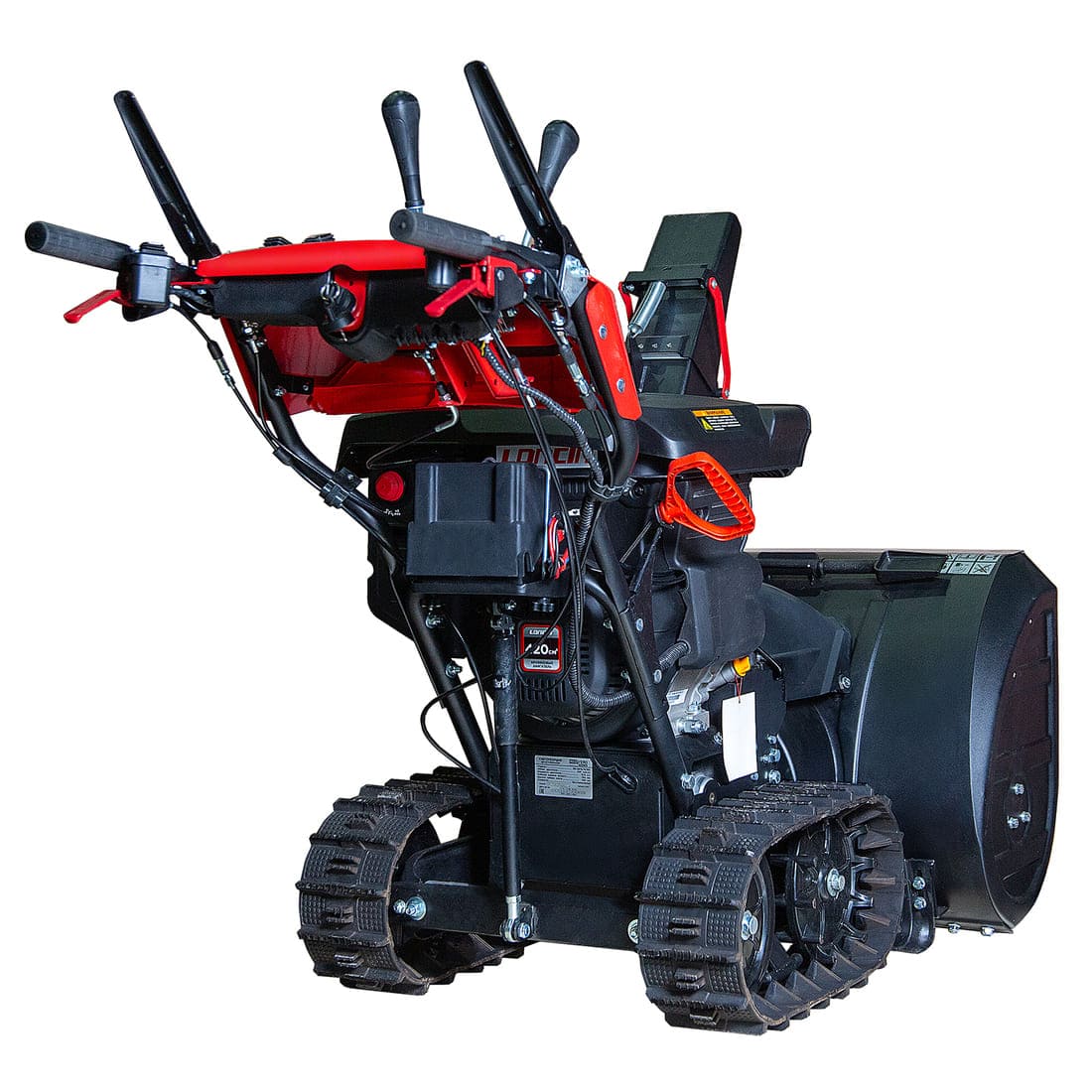 Также гусеничный привод снегоуборщика обеспечивает маневренность и предотвращает пробуксовку, а бесступенчатая гидравлическая трансмиссия позволяет быстро переключать скорости без остановки. Все элементы управления удобно расположены на панели.