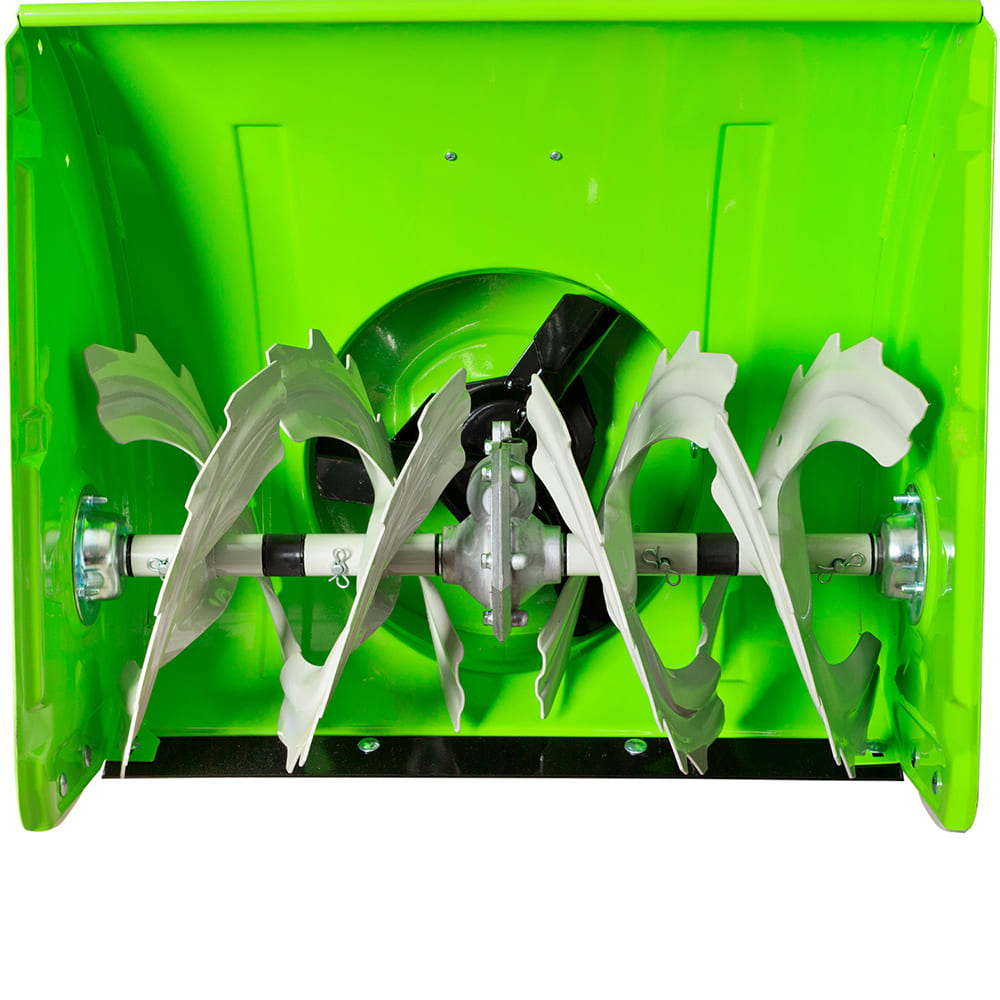 • ● металлический поворотный жёлоб выброса снега с подпружиненным рассекателем;