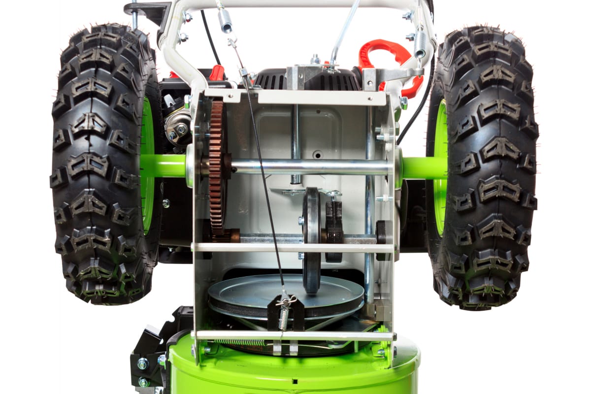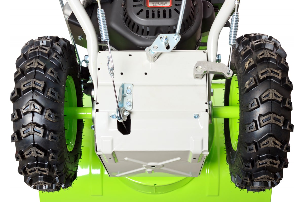 Самоходный снегоуборщик РедВерг оснащен бензиновым двигателем с воздушным охлаждением мощностью 9 лошадиных сил. Вместе с колесами с глубоким протектором, снегоуборочная техника легко перемещается, так как колеса предотвращают пробуксовку на обледенелых участках.