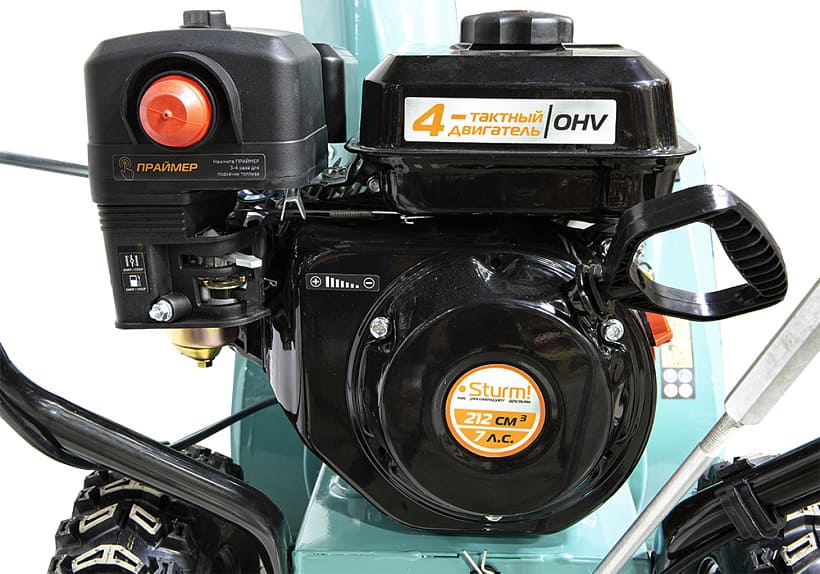 Надежный зимний двигатель с защитой от низкого уровня масла. Большой ковш 56*54 см с полозьями скольжения обеспечивает внушительную ширину прохода и позволяет убирать сугробы до полуметра высотой. Агрессивные шнеки диаметром 300мм легко справляются со слежавшимся снегом и настом. Широкий набор скоростей: 6 вперед/2 назад, для настройки оптимальной скорости движения снегоуборщика. Удобный рычаг управления желобом снегоотбрасывателя всегда под рукой у пользователя для установки и изменения направления выброса снега. Большие пневматические колеса с зимним протектором для уверенного движения.