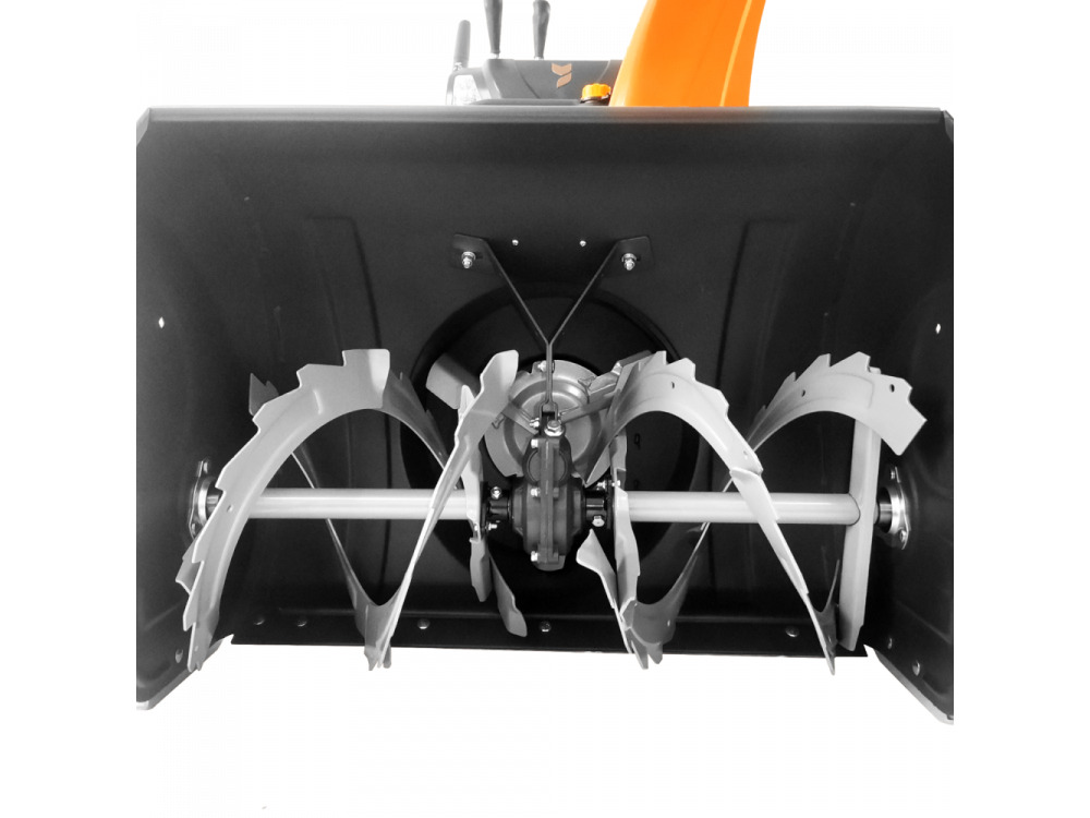 Ширина ковша YARD FOX PRO 7654E – 76 см. Двухступенчатый шнек и желоб из стали легко справляются с любыми осадками высотой до 54 см. Выброс собранного снега осуществляется на увеличенной расстояние – до 15 метров. Управлять машиной легко – обновленная панель с кнопками позволит настроить нужный режим работы, включая дальность и угол выброса снега.